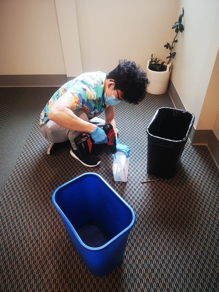 - Twist the opening of the glove and tape the opening so that no mixture can leak out