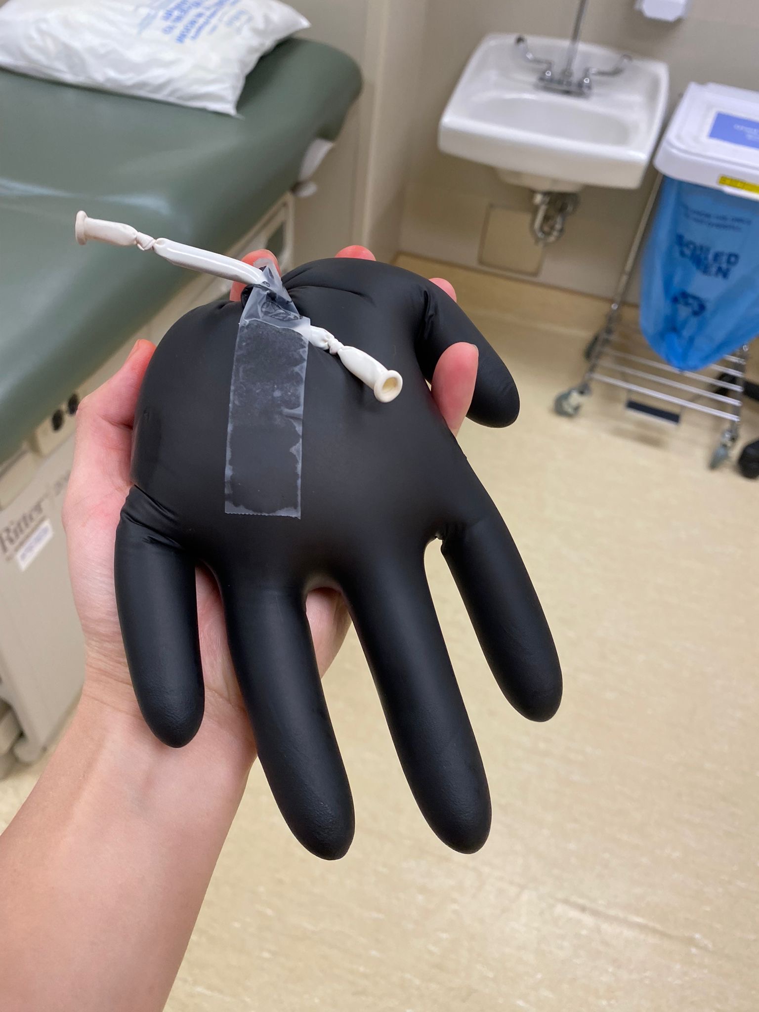 Gelatin phantoms can also be made easily in rubber gloves. Although rubber glove phantoms are hand-shaped, one should note that ultrasound is not typically used for vascular access of the superfical veins. One should think of these rubber glove gelatin phantoms as a neck or as a limb for ultrasound-guided vascular access of deeper vessels. The benefit of these rubber glove phantoms is that they are considerable easier to make compared to the gelatin tray phantoms.