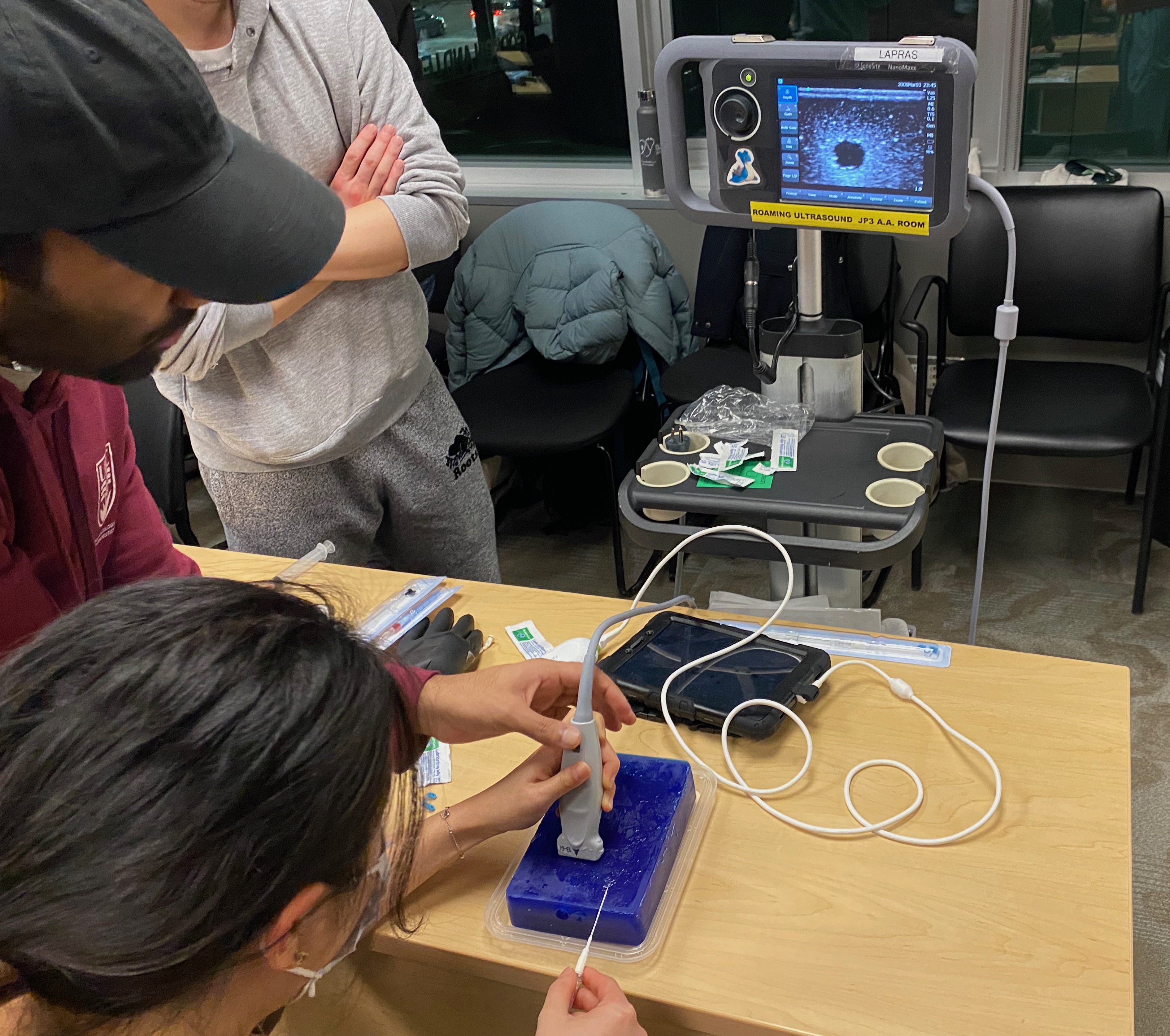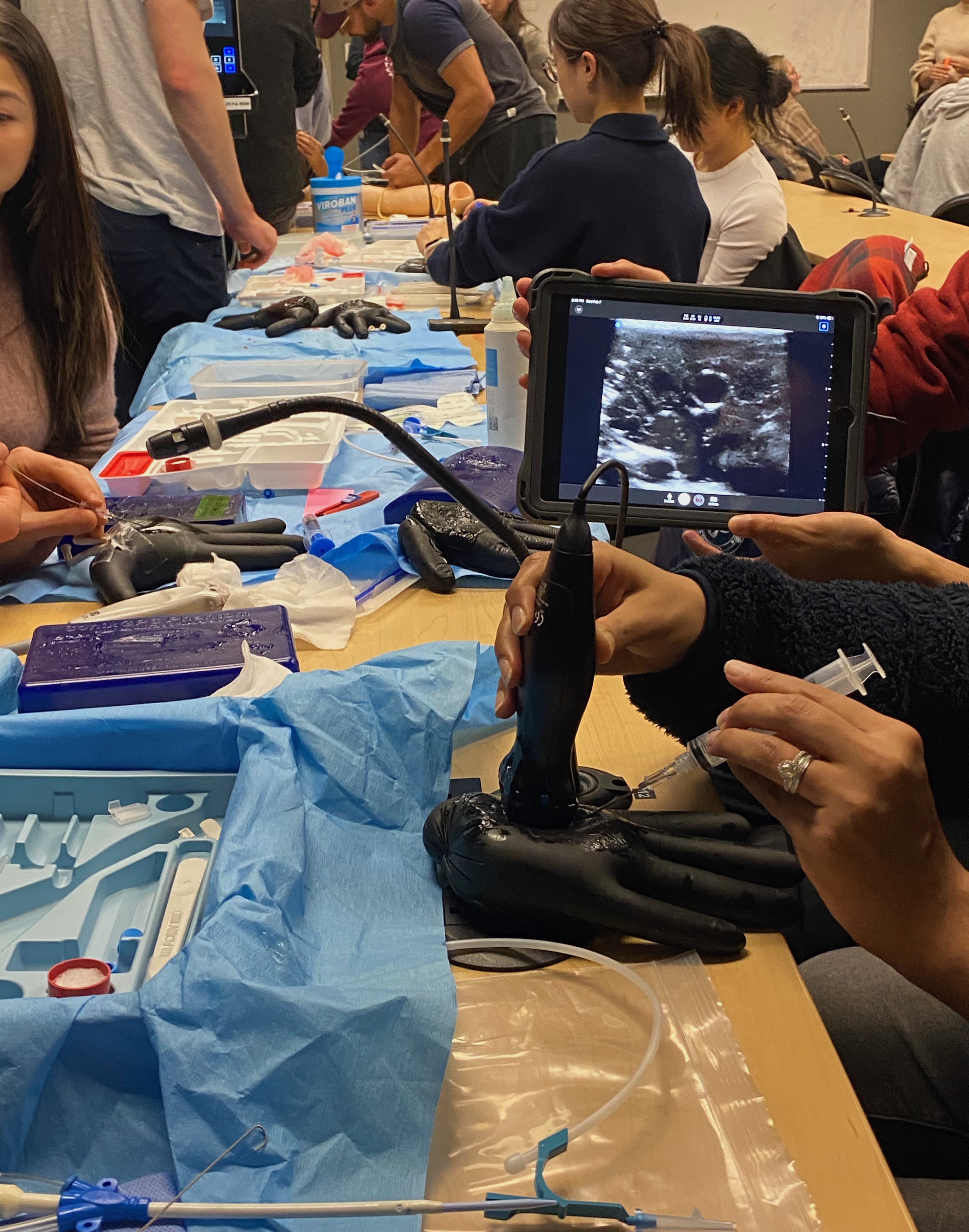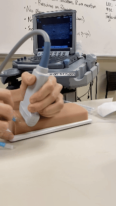 Commercial phantoms consist of a silicone block with practice vessels filled with a liquid such as simulated blood. We are occasionally able to borrow these models for some of our larger workshops.
